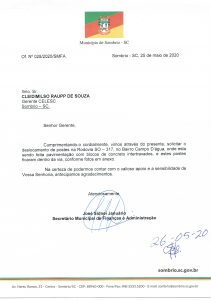 Em 26 de maio, a prefeitura enviou um pedido ao gerente da Celesc – Centrais Elétricas de Santa Catarina -, Cleidimilso Raupp, solicitando o deslocamento dos postes, onde foi feita a “pavimentação com blocos de concreto intertravados, e estes postes ficaram dentro da via” tornando perigoso o transito de veículos.