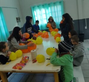 Além de se divertirem com as atividades com tinta e balões, os alunos também participaram das discussões e receberam orientações sobre o tema.