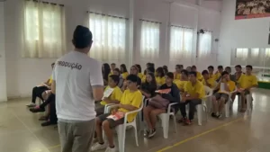 A primeira fase do projeto Comunidades Criativas chegou a Sombrio (SC) no último dia 30, quinta-feira, com a oficina de capacitação para 35 crianças e jovens atendidos pela Casa de Cultura de Sombrio que terá, ao fim do projeto, o muro de sua unidade grafitado com uma arte exclusiva pelos próprios participantes atendidos, sob a monitoria do artista visual Herok (@ricardoherok).