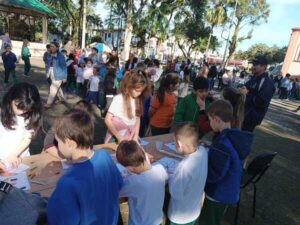 A disponibilização de brincadeiras e guloseima na praça reforçam a importância de que a criança deve brincar e não ser posta no trabalho infantil, sem nunca deixar de priorizar os estudos.