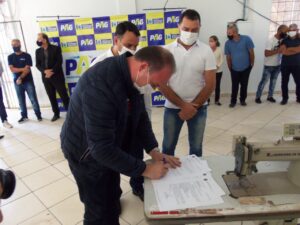A cerimônia de entrega do CFP, que vai capacitar a mão de obra para as indústrias locais e regionais, contou com a presença do deputado federal Fábio Schiochet,PSL, (que na ocasião entregou emenda parlamentar de R$ 300 mil para a patrulha mecanizada), secretários municipais, empresários parceiros, como: Max Alexandre, Leandro Roth, Jandir Pereira e Vilmar Fontana. Dos vereadores, Felipe Santos, Maria Nunes, Jaison Pereira e Josimar Borges, alunos que participarão do primeiro curso de corte e costura e imprensa regional.