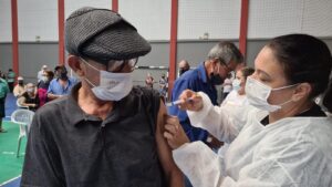 Os idosos que se vacinam no Drive Thru, ou até mesmo os que vão a pé, ao ginásio Rogério Valerim receberem suas aplicações, podem levar um quilo de alimento não perecível para reforçar a campanha #todosPorTodos, criada ainda em 2020, no início da pandemia e que agora ganha esse fortalecimento para o auxílio de famílias em vulnerabilidade social.