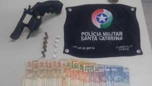 Arma de fogo e drogas são apreendidas pela PM em Criciúma