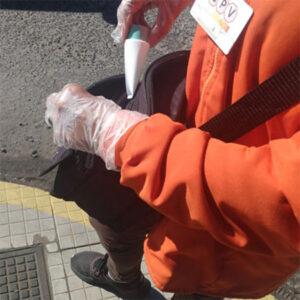 Na rua, dentro de suas bolsas carregam os blocos de cartões, álcool em gel e luvas descartáveis. O álcool é reposto e fornecido dentro do escritório, antes da saída para o expediente.