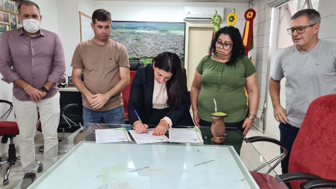 A Prefeitura de Sombrio terá uma reforma em alguns pavimentos de seu prédio a partir desta semana, após a assinatura da ordem de serviço realizada no gabinete da Prefeita Gislaine Cunha, na manhã desta terça-feira, 26 de Abril.