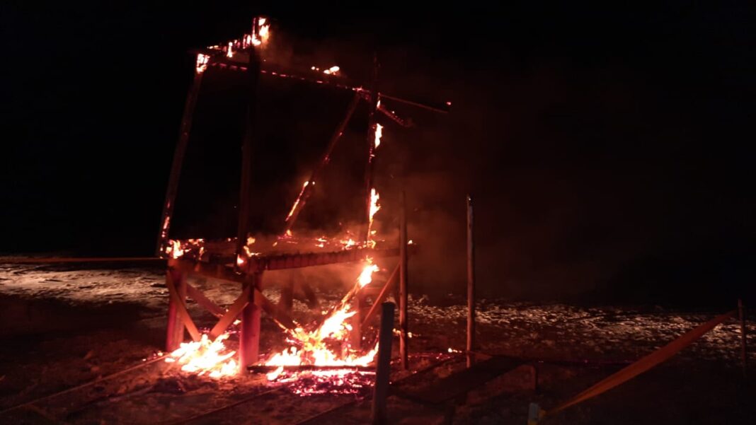 Ao chegar no local, avistaram o incêndio em um posto de salvamento de guarda vidas com aproximadamente 15m².