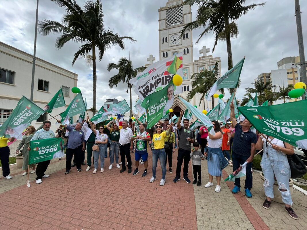 Atos em apoio a Zilli também foram realizados em vários municípios do Sul. Em Criciúma teve Bandeiraço, em Balneário Arroio do Silva foi realizada uma Blitz na entrada do município, em Sombrio foi organizado panfletagem e Bandeiraço, em Turvo houve panfletagem e visita ao comércio, em Urussanga um Bandeiraço aconteceu ontem na sexta-feira e movimentou o Centro do município que recebeu Tiago Zilli de braços abertos.