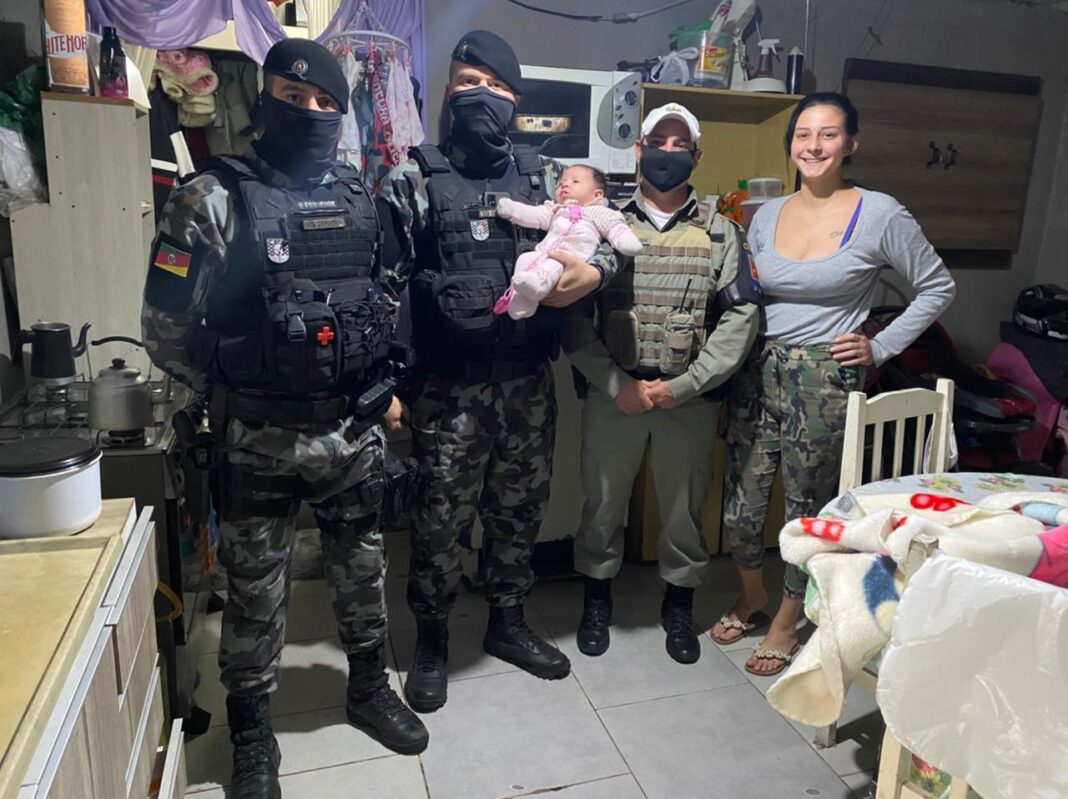 Policiais Militares do 2º BPAT realizaram na tarde desta sexta-feira (18), em Torres, no bairro Guarita, o salvamento de uma bebê de 1 mês, que havia se engasgado.