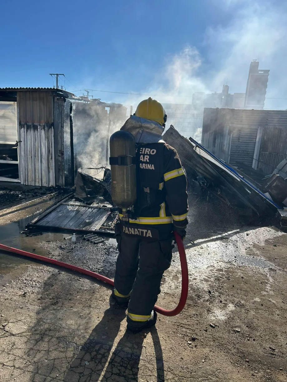 Bombeiros controlam incêndio em depósito de recicláveis no centro de Araranguá