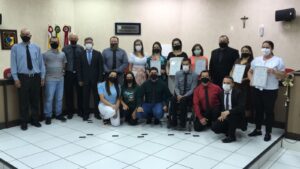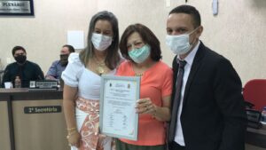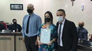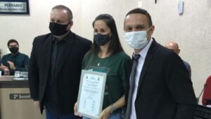 O proponente da Moção de Aplausos e Reconhecimento, vereador Moacyr Oliveira dos Santos Junior e demais vereadores da casa fizeram a entrega das placas de homenagem.