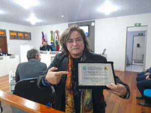 A homenagem foi iniciativa do vereador Presidente da Câmara, Fernando Gonçalves Batista, considerando a participação de Elis Cardoso no reality show Canta +, promovido pela NDTV-Record de SC. “A Elis vem contribuir com a nossa cultura, elevar o nome do município onde se apresenta e como cidadã vai interagir com a comunidade e nos ajudar tornar o município melhor para todos que aqui visitam e habitam”, disse o presidente. Na tribuna, Elis deu um show de emoção e agradecimentos. “Agradeço a cada um dos vereadores, em especial ao Fernando que me procurou para dar apoio e foi atrás junto com o pessoal da cultura da Gaivota e conseguir ônibus para minha torcida no Canta + da NDTV. Estou muito emocionada com essa homenagem, agradeço meus pais, meus amigos daqui e por onde eu passo e agora como “cidadã gaivotense “ vou lutar ainda mais pela nossa praia Sumaré e as demais, reivindicar melhorias para que seja um lugar seguro e tranquilo de se viver”, disse, sob aplausos nos amigos e lideranças que estavam no plenário. Todos os vereadores em seus pronunciamentos parabenizaram a cantora pela honraria recebida.