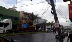 Na tarde desta segunda-feira, (07), ocorreu um acidente envolvendo um caminhão que transportava uma retroescavadeira engalhou na fiação elétrica e deslocou um poste de energia, na rua Sete de Setembro em frente a loja Lebes, no bairro Centro em Araranguá.