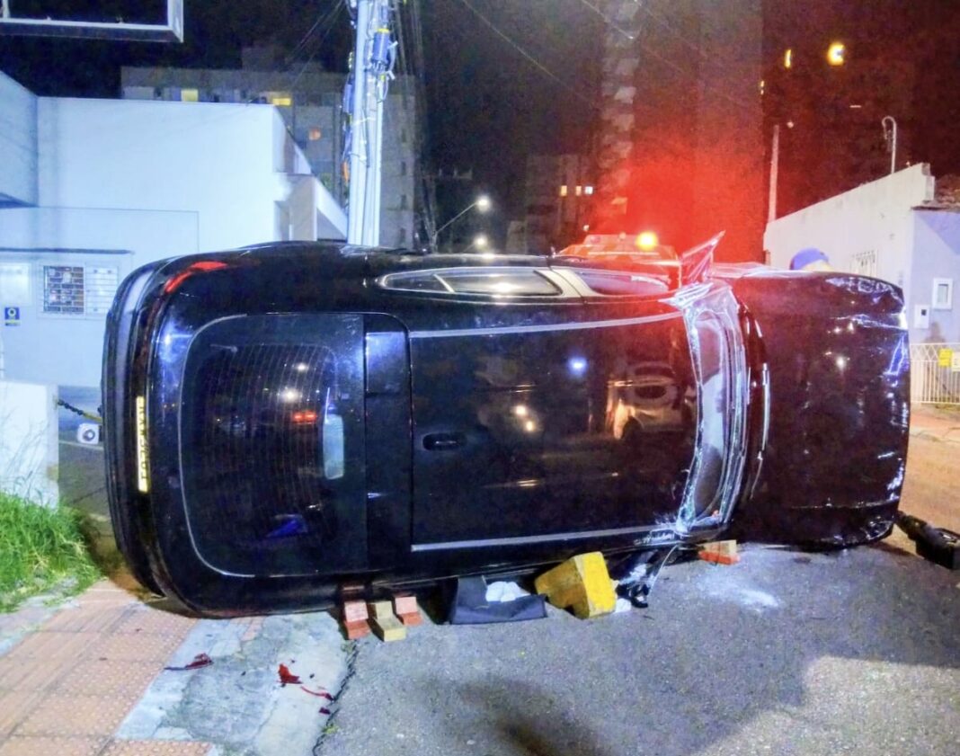 De acordo com as informações do atendimento, o condutor dirigia um Fiat Fastback quando bateu em um Fiat Mobi que estava estacionado e sem ocupantes. Após a colisão, o veículo capotou e permaneceu lateralizado sobre a via.