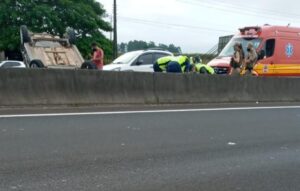 Uma mulher ficou ferida após um acidente na tarde deste domingo (21) em Sombrio. O capotamento aconteceu por volta das 17h30, no quilômetro 430.