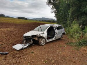 Um veículo Gol de cor cinza capotou na manhã desta terça-feira (20), por volta das 9h10min na Rodovia Romeu Carlessi, comunidade de Morro Chato em Turvo.