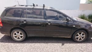 Segundo informações, a PM havia já tinha conhecimento de que havia um casal de fora da cidade, mas já conhecidos pela PM, tentando aplicar golpes nos moradores. A PM foi até a casa dos suspeitos onde foi permitido a entrada. No local estava o casal e dentro do pátio estava um veículo Toyota Fielder. Inicialmente a PM realizou identificação do casal observando que em consulta ao sistema foi constatado que os dois estavam com mandado de prisão ativo por crimes de furto.
