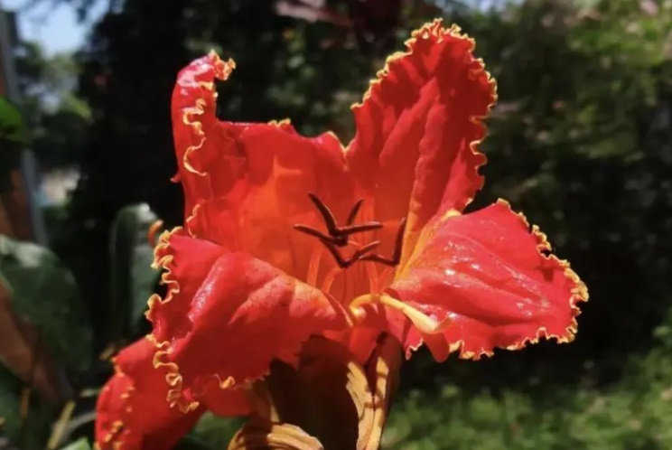 Conhecida como Bisnagueira, a planta tem origem africana e foi introduzida no Brasil como árvore ornamental e integra o paisagismo de muitas cidades de Santa Catarina. O grande número de botões, com aberturas sucessivas, garante longa floração. Além disso, as flores com formato de tulipa e de coloração forte chamam atenção.