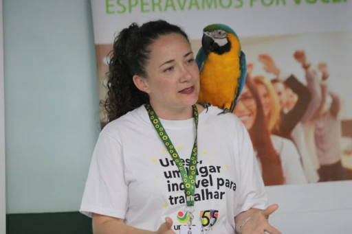 “Os desafios que as pessoas autistas enfrentam perante a sociedade são diversos e podem variar de acordo com as características individuais de cada pessoa”, disse Ana, que estava com um dos seus animais de estimação, uma arara, que, segundo ela, tem contribuído muito para o seu desenvolvimento.
