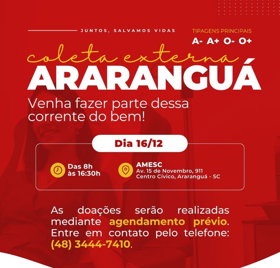 Os organizadores reforçam que é obrigatório apresentar documento oficial com foto no momento da doação. A campanha reforça a importância do gesto solidário que ajuda a salvar vidas e convida a comunidade araranguaense a fazer parte dessa corrente do bem.