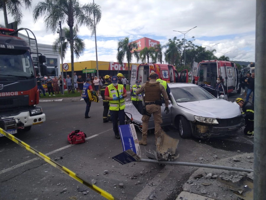 Na tarde deste sábado (6), um acidente de trânsito na Avenida Centenário, no bairro Pinheirinho, em Criciúma, mobilizou equipes do Corpo de Bombeiros, Samu e Polícia Militar. A colisão envolveu um automóvel Hyundai Azera, que atingiu postes de energia elétrica.