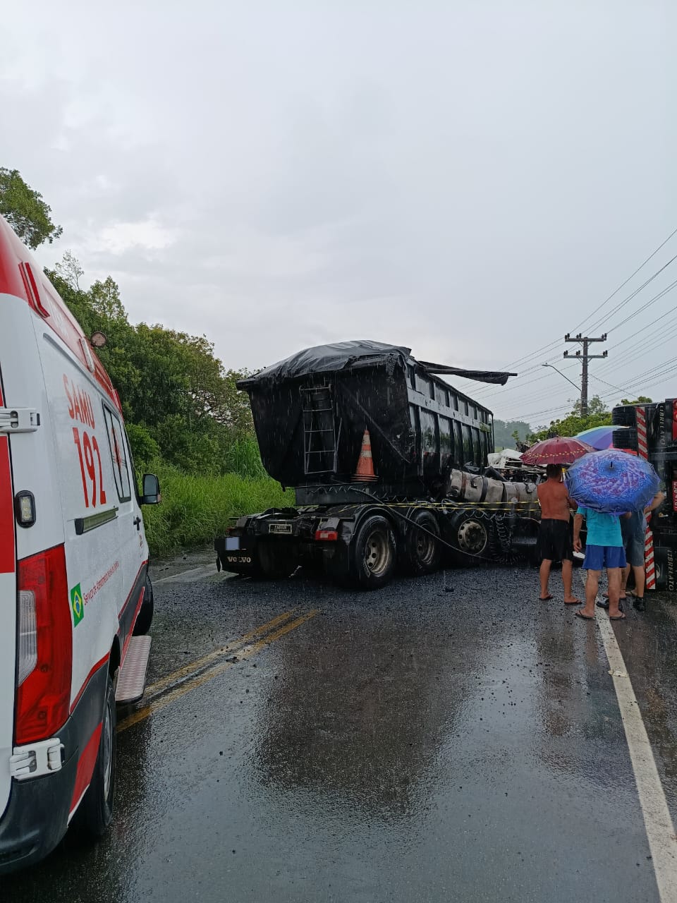 De acordo com o Corpo de Bombeiros, ao chegarem ao local, as guarnições constataram que uma das carretas havia tombado fora da pista, com duas vítimas já fora do veículo. A outra carreta permanecia sobre a rodovia, com o condutor preso na cabine, exigindo um trabalho de desencarceramento.