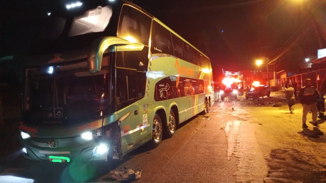 Um acidente de trânsito registrado na noite deste sábado (16) deixou um homem de 64 anos ferido em Criciúma. A colisão frontal ocorreu por volta das 21h, na Rua Miguel Napoli, no bairro Rio Maina, envolvendo um veículo de passeio e um ônibus.