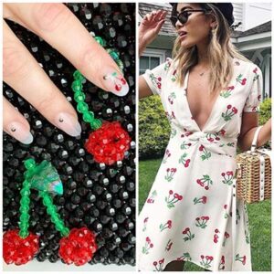 E a estampa sensação do momento é a cereja! Sim, a frutinha ganhou o coração das fashionistas e promete bombar no verão. Use nos looks e também em acessórios. Vale lembrar que a estampa estará presente nas unhas decoradas também!