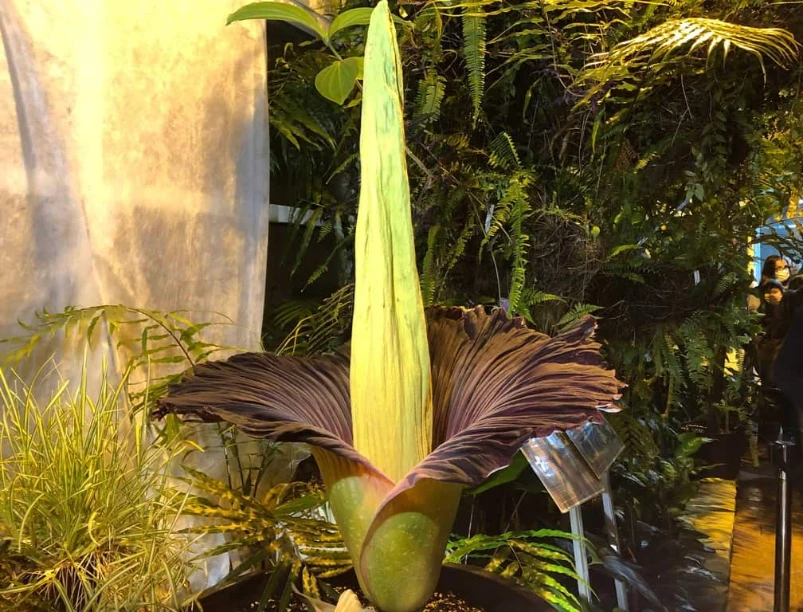 Conhecida pelo carinhoso nome de flor-cadáver, a Amorphophallus titanum impressiona tanto pelo tamanho (pode atingir 3 metros de altura e pesar 75 quilos) quanto pelo cheiro característico (de carne apodrecida), que lhe confere o nome popular. Esta planta rara atrai multidões quando floresce, um evento que ocorre apenas a cada 10 ou 15 anos, devido à grande quantidade de energia necessária para formar sua imensa estrutura de floração, chamada de espata.