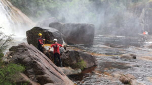 Antes de realizar trilhas em cachoeiras é necessário verificar a previsão do tempo, justamente por conta do fenômeno conhecido como cabeça d’água ou ainda como tromba d’água.