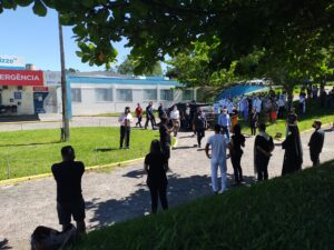 Na manhã de hoje (11), por volta das 10h, em frente ao Hospital Regional de Araranguá, Pastores e Padres da região juntamente com profissionais de saúde e familiares de enfermos internados na entidade hospitalar fizeram orações e proferiram palavras de motivação.