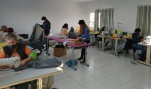 Estas máscaras são fruto de outra ação que também beneficia a população de Santa Rosa do Sul. As alunas se reuniram nas tardes de terça, quarta e quinta para a capacitação em máquinas de costura industriais. “As participantes receberam todo o material utilizado no curso e aproveitamos as máscaras confeccionadas para contribuir com a prevenção à covid-19”, comemora a coordenadora do CRAS, Cleonice Bitencourt Cabral.