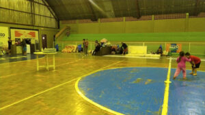 O grande volume de água que corre no Rio Araranguá invadiu o Bairro barranca baixadinha na vila São José em Araranguá por volta das 17 horas de ontem (04) e diversas ruas ribeirinhas. Por medida de precaução, famílias que moram na comunidade foram retiradas de suas casas pelas equipes da Defesa Civil de Araranguá, Secretaria de Obras, Corpo de Bombeiros e ainda, com auxílio da Polícia Militar. Estima-se que mais de 20 famílias já tenham deixado suas casas. Algumas delas foram para casa de parentes e amigos. Agora são 70 pessoas de 16 famílias, resgatadas e já instaladas no alojamento montado pela Prefeitura Municipal de Araranguá no Ginásio Padre Ézio Jully, conforme previsto no plano de contingência.