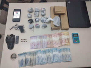 Além da arma de fogo, a PM apreendeu um total de 2,2 quilos de maconha. A mulher baleada foi socorrida pelo Serviço de Atendimento Móvel de Urgência (Samu) e encaminhada ao Hospital São José. Os outros dois envolvidos foram conduzidos para a Delegacia de Polícia.