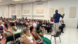 A programação contou ainda com palestra de João Carlos de Oliveira, professor, palestrante e consultor empresarial, que abordou, de forma leve e bem-humorada, os desafios do dia a dia dos profissionais da educação, promovendo momentos de reflexão, acolhimento e descontração.