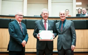 Ao receber a homenagem, Tiscoski expressou sua gratidão e emoção, enfatizando a significância do reconhecimento por parte da Assembleia Legislativa. “Hoje celebramos 9 décadas da nossa associação. Hoje celebramos um grupo de pessoas que tiveram no passado a coragem e visão para criar a associação e transformar o futuro da engenharia e do nosso estado. É uma honra ter recebido essa homenagem de todos vocês, em especial de você, Zé Milton, um engenheiro agrônomo que é a nossa grande liderança política e representante da classe dos engenheiros”, enfatizou Leodegar.