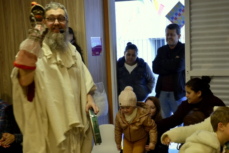 Espetáculo de teatro de bonecos encanta crianças da Casa Guido em Criciúma