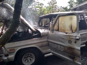 Ainda durante o domingo por volta das 13h10min no Bairro guarita em Sombrio outro carro também acabou pegando fogo. O fato ocorreu na Rua Olavo Antonio dos Santos, uma camionete Ford F-100 estava pegando fogo. Diante da situação os bombeiros usaram extintores de pó químico seco que foi transportado pelo ASU-449 com aproximadamente 400 litros de água para combater as chamas. Os bombeiros desconectaram a bateria do veículo. O local ficou aos cuidados de familiares do proprietário. Não houve registro de feridos. Segundo relato de um vizinho, o carro teria dado partida sozinho, saiu da garagem e posteriormente pegou fogo.