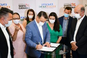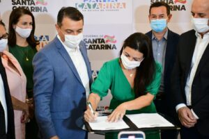 A Prefeita de Sombrio, Gislaine Cunha, estava em Florianópolis, na tarde desta quarta-feira (09), para a assinatura do convênio com o Governo do Estado referente ao plano mil, que encaminhará ao Município a quantia equivalente a mil reais por habitante, de acordo com a projeção do Senso, do IBGE, de 2010 e sua estimativa para 2022.