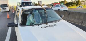 A vítima ainda não identificada, foi conduzida em estado grave ao hospital Dom Joaquim de Sombrio. A CCR sinalizou o local e a Polícia Rodoviária federal fez o registro do acidente.