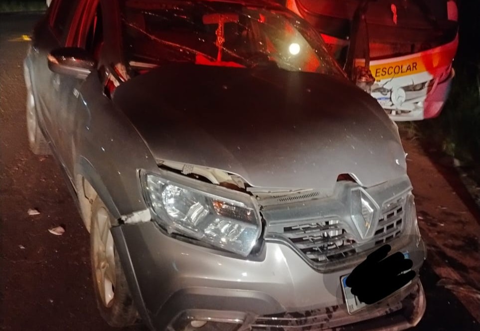 Um idoso de 69 anos ficou ferido após uma colisão entre um carro e um ônibus escolar na rodovia SC-449, no bairro Retiro da União, em Sombrio, por volta das 18h20 desta quarta-feira (8). O acidente envolveu o condutor de um Renault Sandero Stepway e um coletivo escolar. A causa da colisão não foi informada.