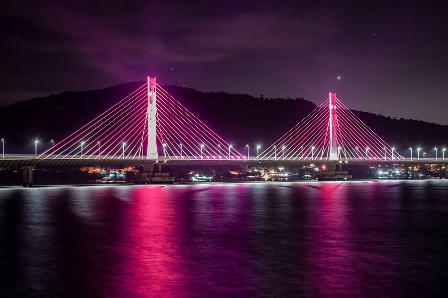 De hoje (06) a domingo (08), tons de rosa e vermelho irão refletir nos cabos da ponte