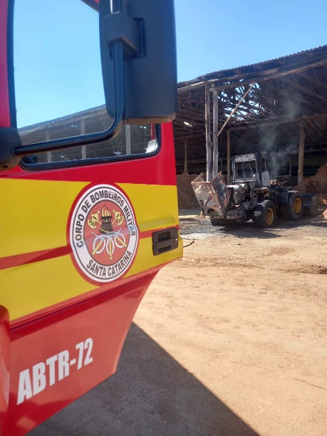 Na manhã desta quinta-feira (21), um incêndio em uma pá carregadeira mobilizou o Corpo de Bombeiros Militar em uma indústria cerâmica localizada às margens da BR-101, no bairro Esplanada, em Içara.