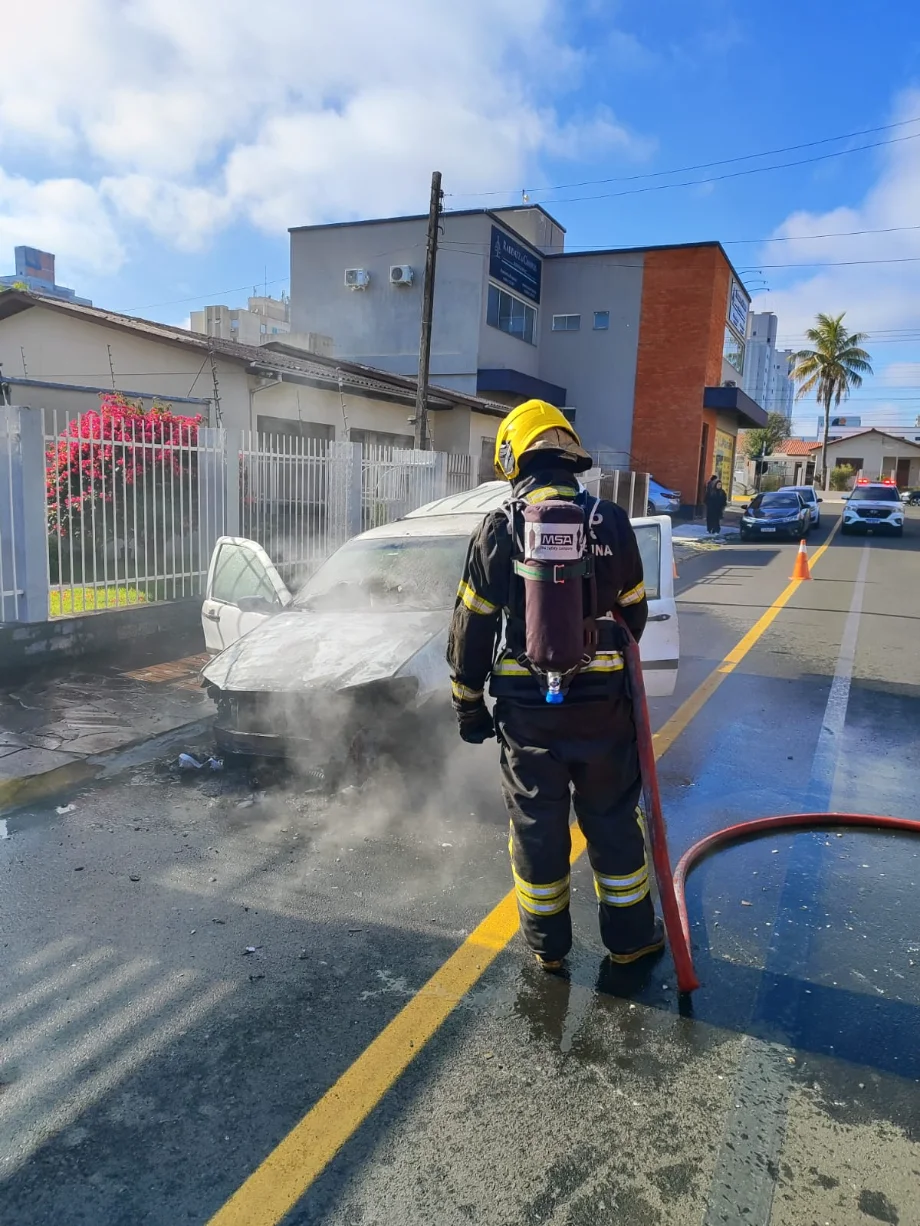 Um veículo Fiat Strada foi parcialmente destruído por um incêndio na manhã desta quarta-feira (9), por volta das 9h41, na Rua Dona Caridade, no Centro de Araranguá. O fogo se concentrou no compartimento do motor e mobilizou o Corpo de Bombeiros Militar.