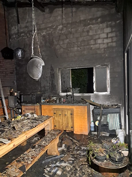 De acordo com o Corpo de Bombeiros, o fogo consumiu cerca de 60 m² da estrutura, construída em alvenaria, danificando as paredes e o telhado. Felizmente, não houve vítimas.