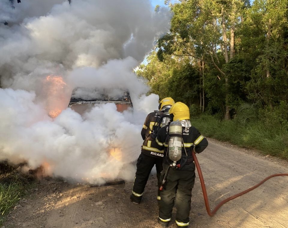 BombeirosIncêndio destrói veículo em Passo de Torres