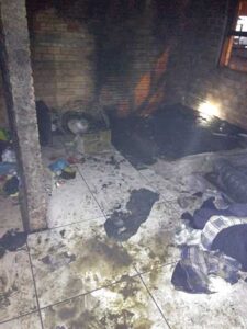 Na madrugada de hoje (14), por volta das 02h, em Turvo, houve um incêndio em residencia unifamiliar de alvenaria, com teto de laje de aproximadamente 35m², tendo a área sinistrada um quarto da edificação com aproximadamente 12m².