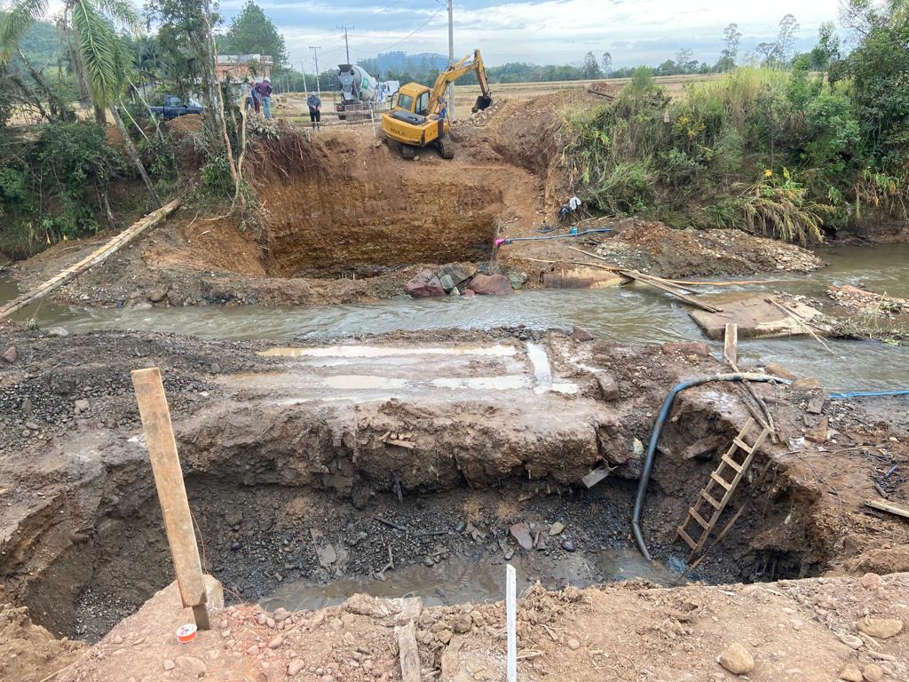 Para que toda a estrutura das novas cabeceiras possa ser executada, com a colocação de ferragens e concreto, um trabalho de barragem do rio precisou ser realizado, permitindo que a água passasse entre os canteiros de obras. Maquinários e profissionais da empresa responsável pela execução da nova ponte estiveram durante toda a semana no local.