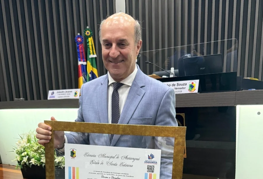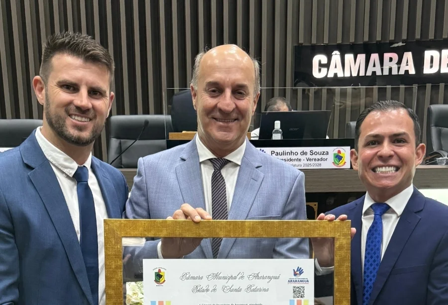 A Câmara de Vereadores de Araranguá concedeu, na noite desta segunda-feira, 16 de março de 2026, o título de Cidadão Honorário Araranguaense ao deputado estadual José Milton Scheffer. A cerimônia ocorreu no Plenário Altícimo Tournier, durante a 11ª sessão ordinária do ano, com o objetivo de reconhecer os serviços prestados pelo parlamentar ao desenvolvimento do município. A honraria foi viabilizada pelo Projeto de Decreto Legislativo nº 001/2026, de autoria dos vereadores Douglas Michels e Diran Martins, conforme informações da Câmara de Vereadores de Araranguá.