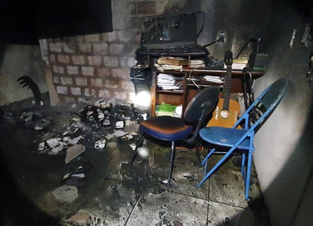 Uma kitnet foi incendiada na noite desta segunda-feira (17). O sinistro aconteceu na rua Prefeito Fioravante Minatto no bairro Parque da Avenidas, em Sombrio. O incêndio destruiu boa parte dos móveis e objetos, restando apenas um violão, uma cadeira e alguns livros. Ninguém se feriu.