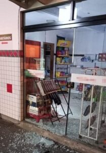 Segundo ele, ao chegar ao local, percebeu que a porta de vidro do posto foi quebrada, havia uma gôndola de balas no chão e a caixa registradora estava aberta, porém não soube precisar o que foi levado.